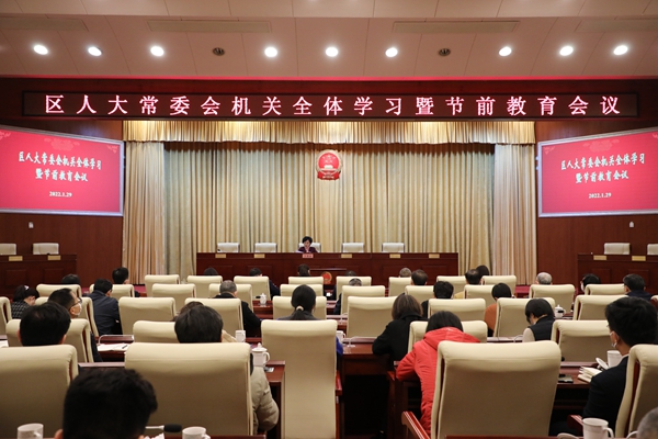 2022年“春节”将至,为进一步严明纪律要求,过一个廉洁、安全、欢乐、祥和的节日,1月29日,区人大常委会机关召开全体学习暨节前教育会议。